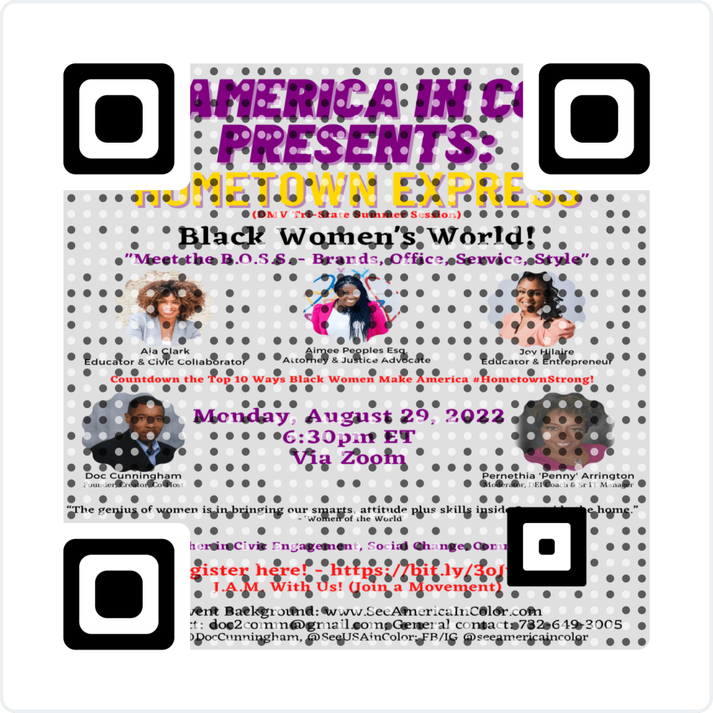 Scan the QR Codes below to “J.A.M. With Us” or learn more about the K-12 Social Challenge Contests or register for the DMV ‘BOSS’ Forum.
