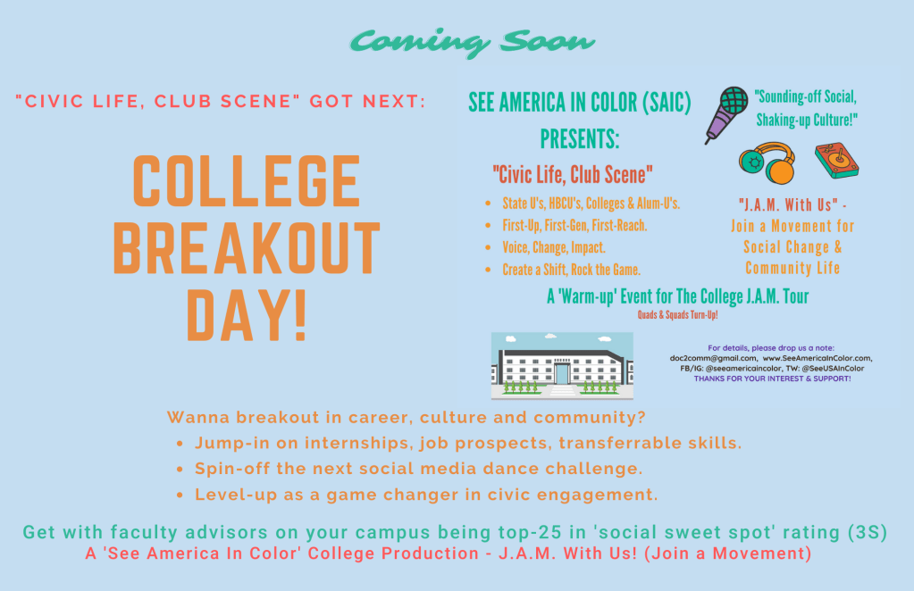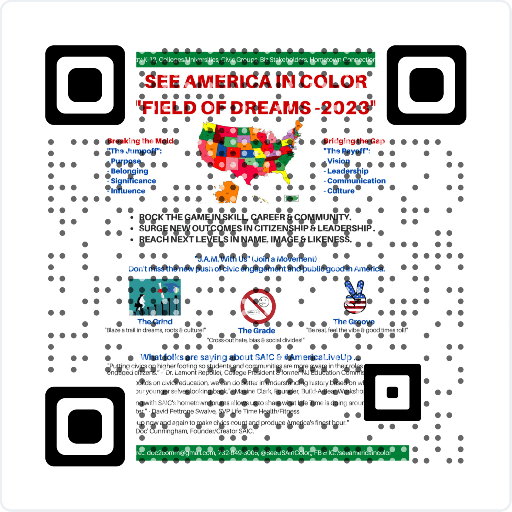 *To find out more about how you can “J.A.M. With Us” (join a movement) in civic engagement, social change and community life, checkout the Sign-up Center with flyers and QR codes below. Learn more about the Field of Dreams 2023, K-12 Social Challenge Contests and College Breakout Day.