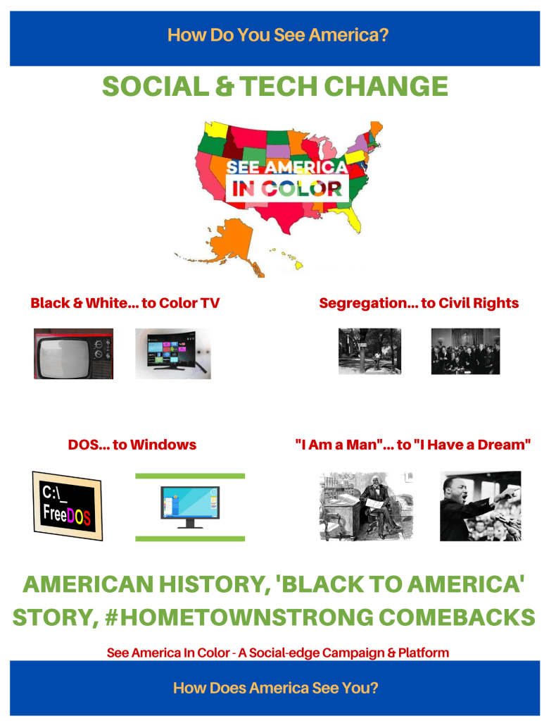 Realizing how we got here from our founding to a somewhat shaky standing on these topics, might take going under the hood of American history, the ‘Black to America’ story and #HometownStrong comebacks. It was out of past frustration and being fed-up that led to creating SAIC years ago. That’s what continues to inspire emerging efforts to Make Our Journeys One, #MojoInAmerica. From SAIC’s deep dive in history we were left with some takeaways: